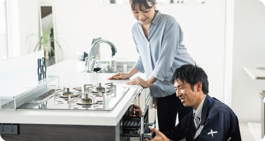 そうしたLPガスの特徴を生かしながら、お客さまのご期待やニーズに応えていくために、私たちはガス供給・保安事業、各種ガス機器の販売・修理はもとより、再生可能エネルギーの活用や家庭用燃料電池の提案などにも取り組んでおります。